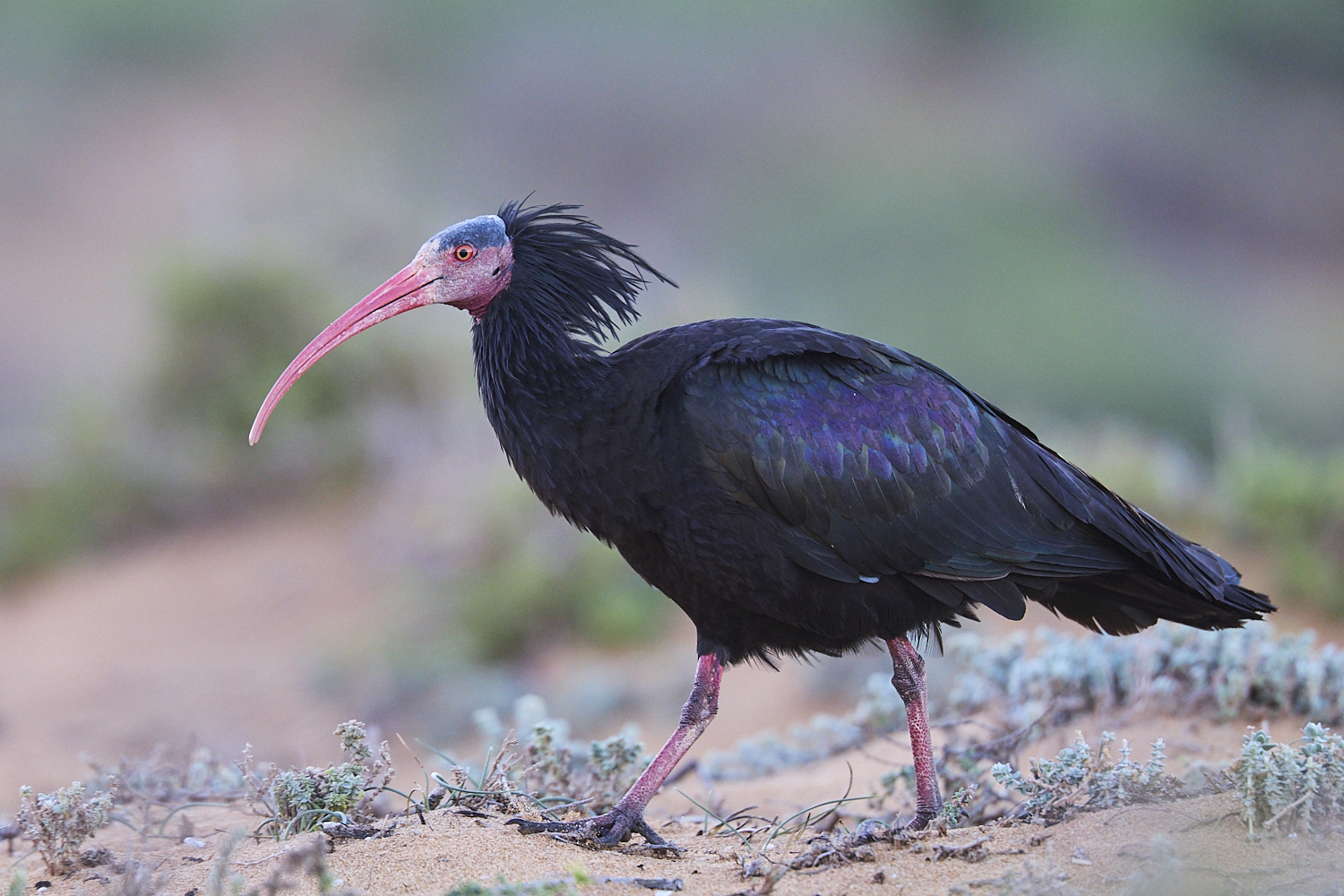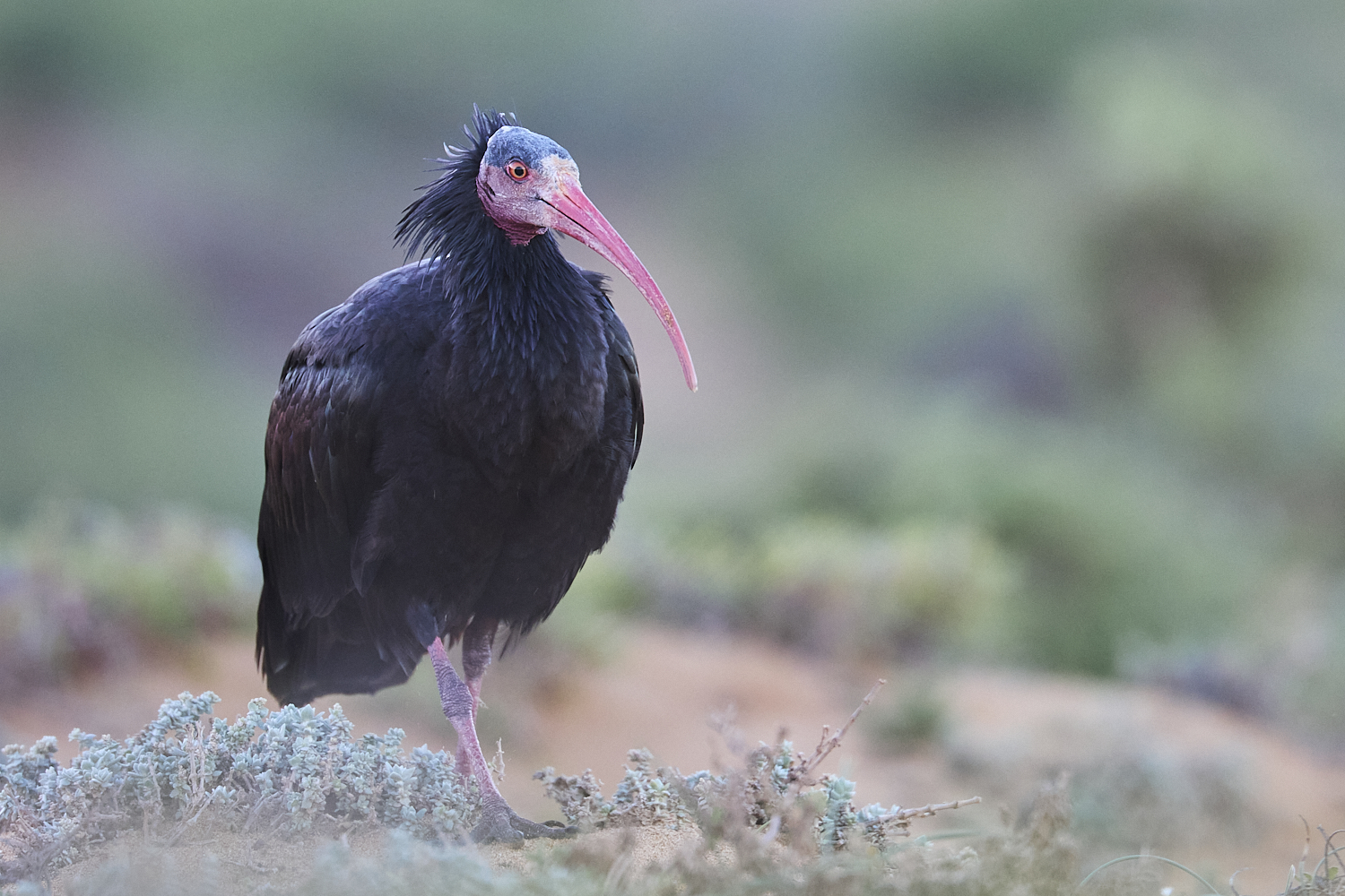 northern bald ibis (or waldrapp) in Morocco. one of the rarest birds on Earth
