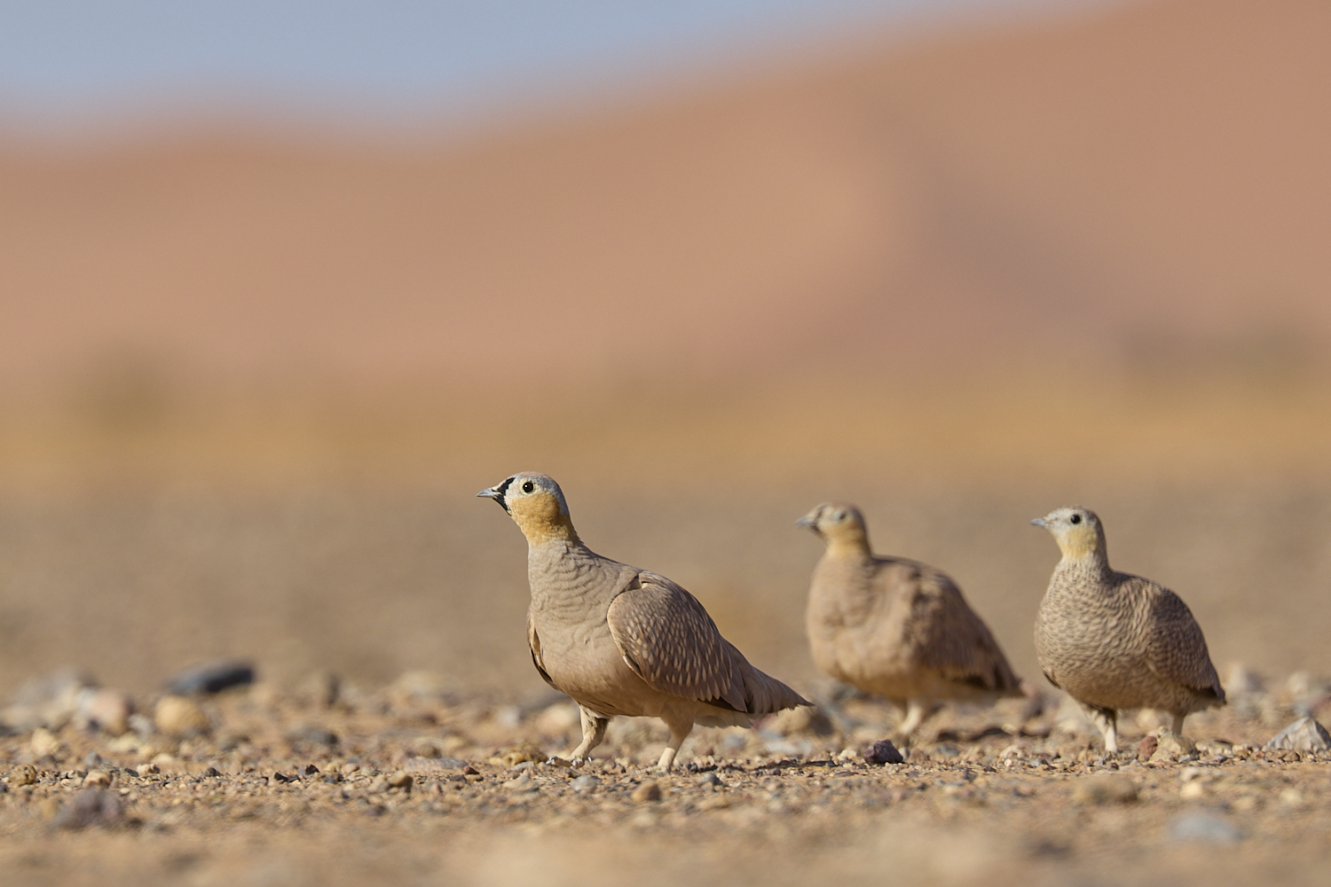 Again and again the crowned sandgrouses pause and inspect the area.