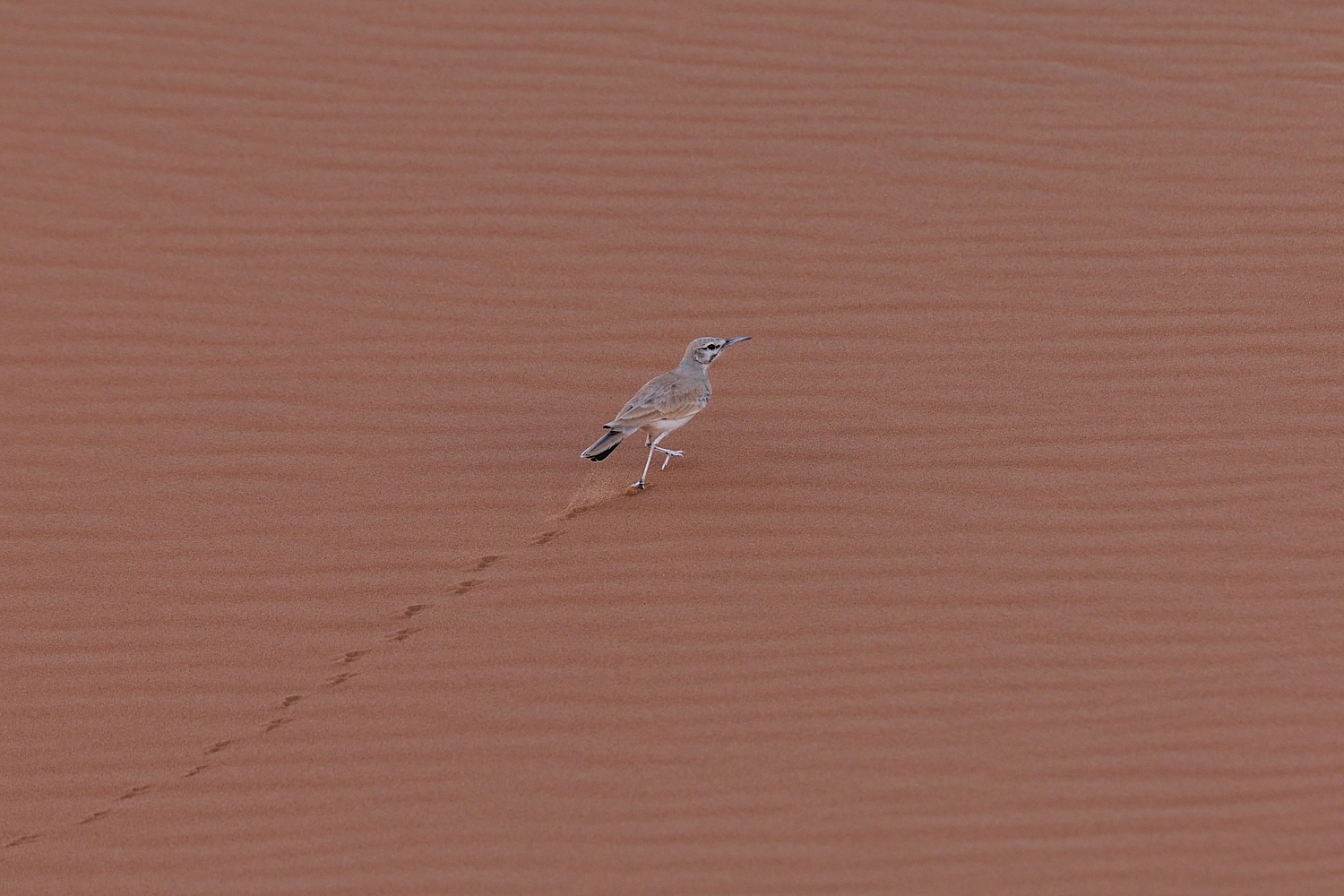 True to its German name (Wüstenläuferlärche which would translate to desert running lark), the greater hoopoe lark runs – or rather sprints – across the dunes of the Sahara.