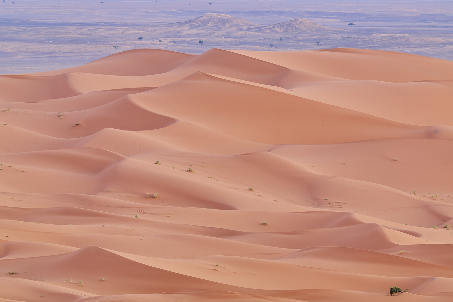 I sleep surprisingly well until the alarm rings. Still in the dark, I set out toward the largest dune, hoping for new views and photographic perspectives.