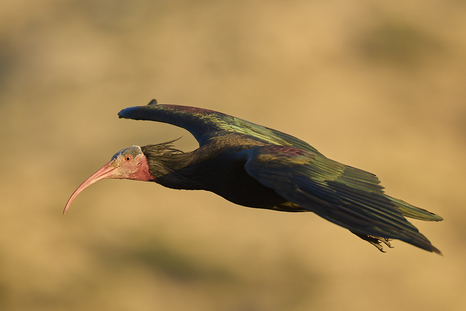 Oft wird der Waldrapp als hässlicher Vogel verschrien. Doch bei näherer Betrachtung hat der Vogel mit seinen schillernden Farben im Gefieder und dem roten Schnabel bzw. Kopf durchaus etwas Fotogenes.